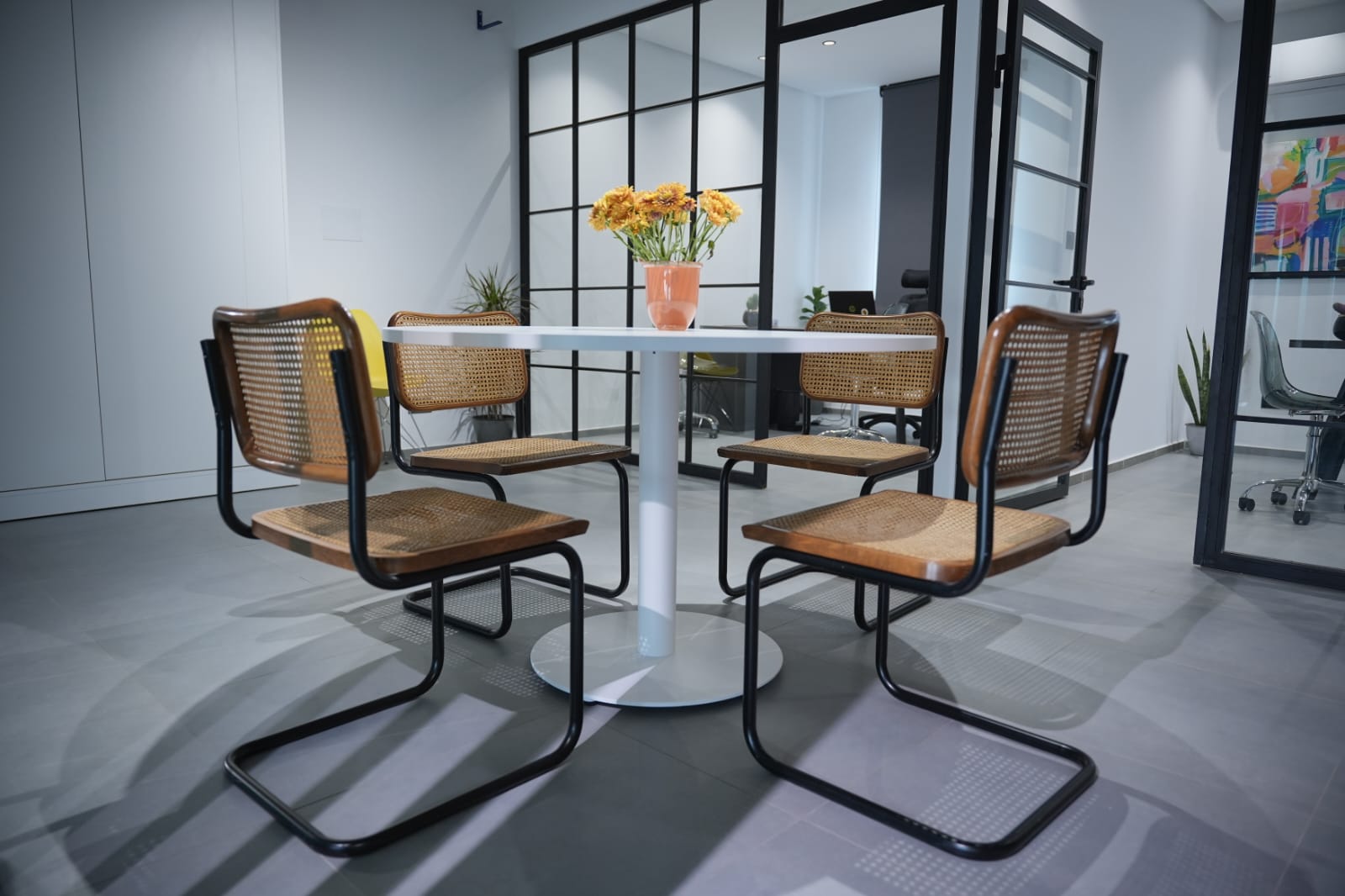 L’entrée, bien plus qu’un simple point d’accès, crée la première impression de votre entreprise. Pour ce projet, nous avons remplacé les portes en aluminium par des portes push-up, ornées de lignes calligraphiées par un grand artiste national. Cette fusion d’art et de design transforme l’entrée en un espace captivant, conçu pour émerveiller les visiteurs.
